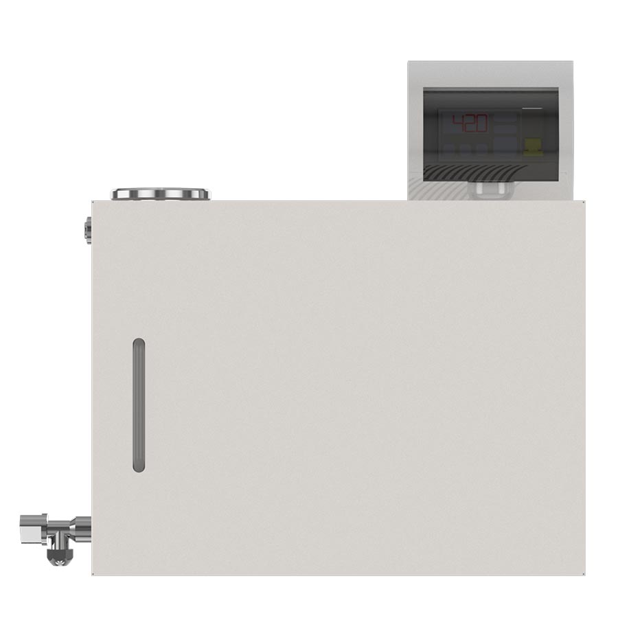 Парогенератор проточный c выносным/встроенным цифровым пультом управления, 9 кВт Проточные парогенераторы подключаются к водопроводу и автоматически добавляют воду в прибор при ее расходовании. Парогенератор служит для образования пара в саунах, хамамах, банях и душевых кабинах. Мощность стоит выбирать в зависимости от объема парной. Работа парогенератора осуществляется за счет встроенного или выносного пульта управления (на ваш выбор). Он позволяет устанавливать температуру, мощность и время процедур парения. При достижении необходимой температуры происходит автоматическое прекращение подачи тепла для нагрева воды. При снижении температуры более чем на 3°С температурный датчик снова включает подогрев. Таким образом время непрерывной работы парогенератора составляет более 12 часов.