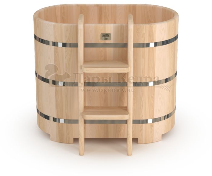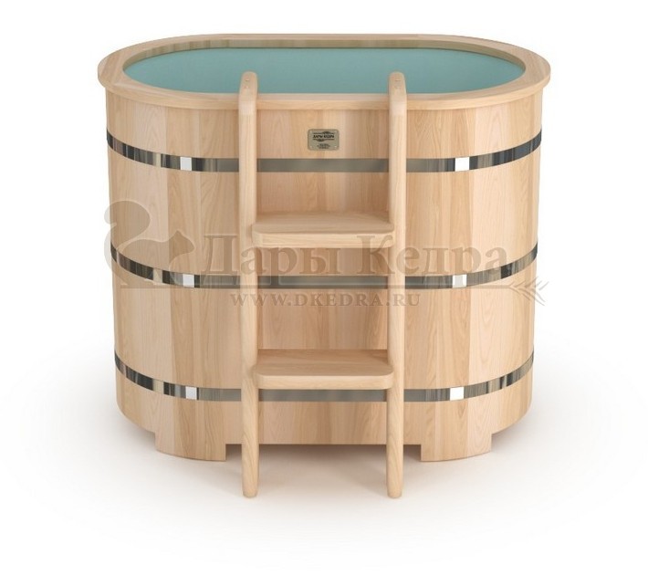 • Овальная купель для бани из кедра Это герметичная емкость для воды из кедра, которая используется для отдыха и охлаждения тела после процедур парения. Купель оснащена лавочками, приставной и внутренней лестницей из кедра. За счет стяжных болтов обручи из нержавеющей стали плотно прилегают к кедровой купели. Это позволяет равномерно распределять нагрузку воды и сохранить форму изделия в период эксплуатации. При правильном уходе купель для бани не рассыхается и не подвергается гниению. Овальная купель подходит для уличного и комнатного использования. Обязательно обращайте внимание на ширину дверных проёмов. Если они не позволяют занести изделие в собранном виде, то рекомендуем заказать разборную модель купели, которая оплачивается отдельно. При взаимодействии древесины кедра с водой активируются эфирные масла и фитонциды, благодаря чему организм насыщается полезными веществами.