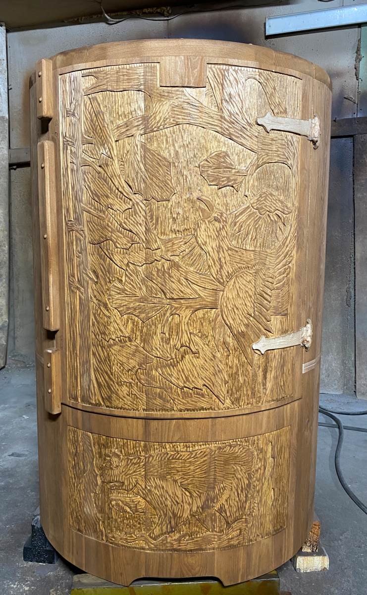 Художественное оформление на лицевой части, сбоку или на всей площади кедровой бочки по вашему эскизу.